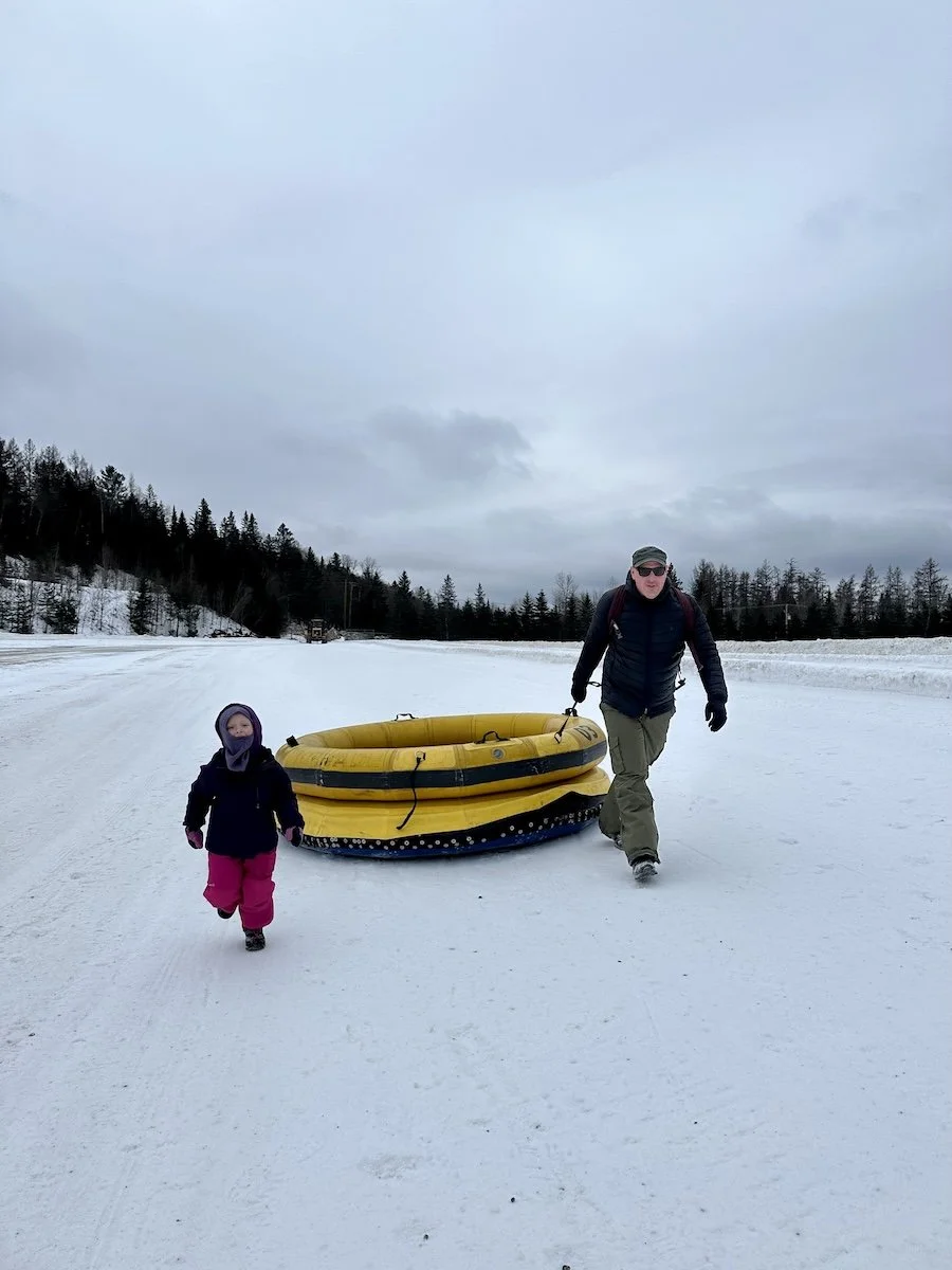 Logistics: The slide is open from mid-December to mid-March. It will closing occasionally if the weather is too warm. The cost $4 CAD per person. Buy the tickets inside the cafe at the bottom of the toboggan, wait in line to grab a sled, and then pull it up to the top yourself. From there, you will be guided on how to sit properly and secure everyone into the toboggan.