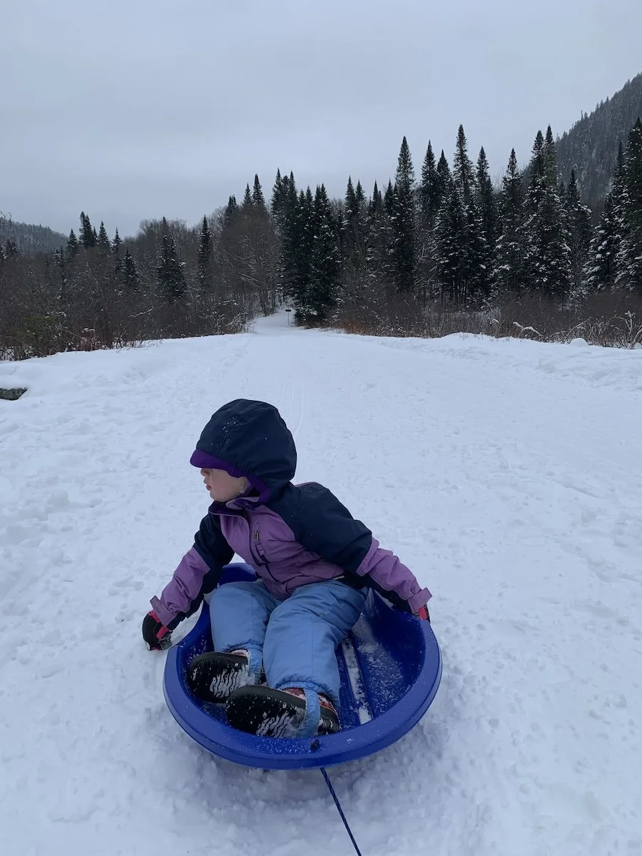 Jacques Cartier National Park is only 40 minutes away from Quebec City and is a beautiful, expansive park with lots of winter activities. The park’s visitor’s center features clean bathrooms, a fireplace, lots of tables, a small store, and many options for gear rental. You can walk (or ski) right out the door, and find yourself on a snow-packed trail. We found that one hour is usually enough for small children to be out and about.