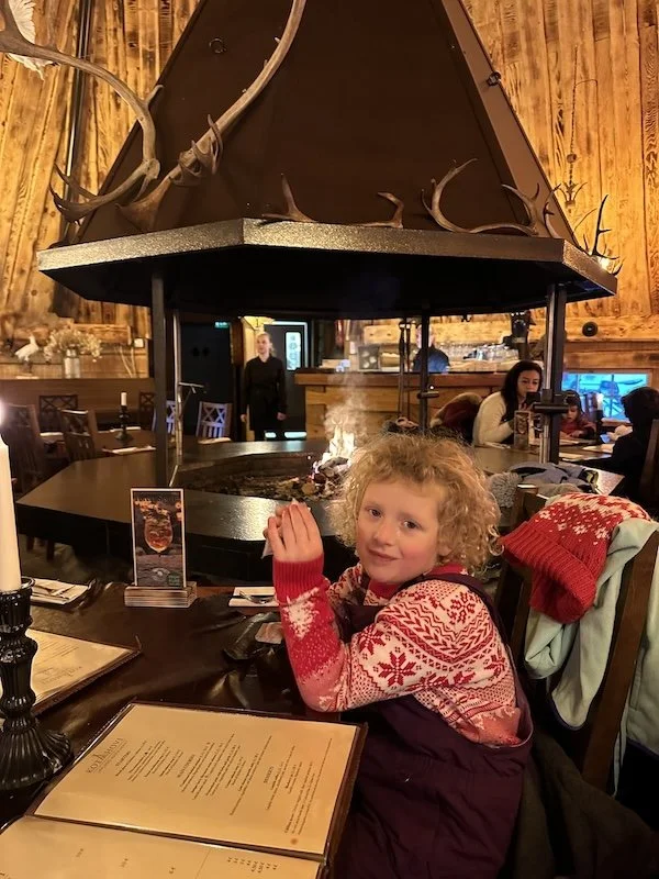 Right next to Mrs. Claus’ cottage is the kota. There are no reservations, so we simply got in line for lunch before they opened. Our wait was not long at all, and the food came quickly. The Kotohovi serves traditional Lappish food- which means a big bowl of salmon soup will be on the menu. They did have a children’s menu. Plan to spend about €15-€20 a person- less if your children will share meals. There are plenty of other restaurants to eat at in Santa Claus village-but this worked out perfect for us.