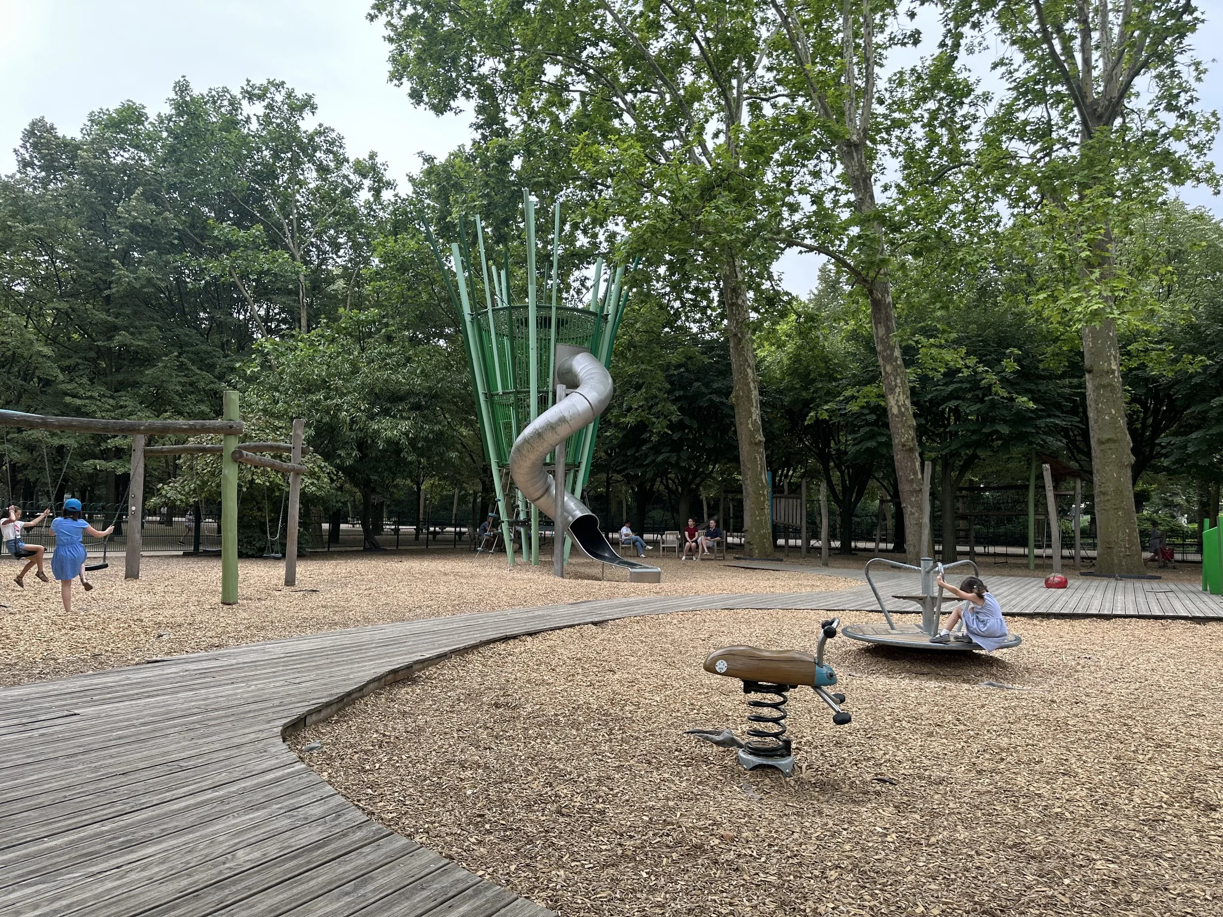 Ludo Jardin is a gated playground tucked away in a tree-lined section of Luxembourg Gardens. It boasts a sand pit (with lots of toys), see-saws, climbing features, slides, and a zip line. There was plenty for our 6-year-old daughter to play with, and we saw many younger (and older) children who were entertained.