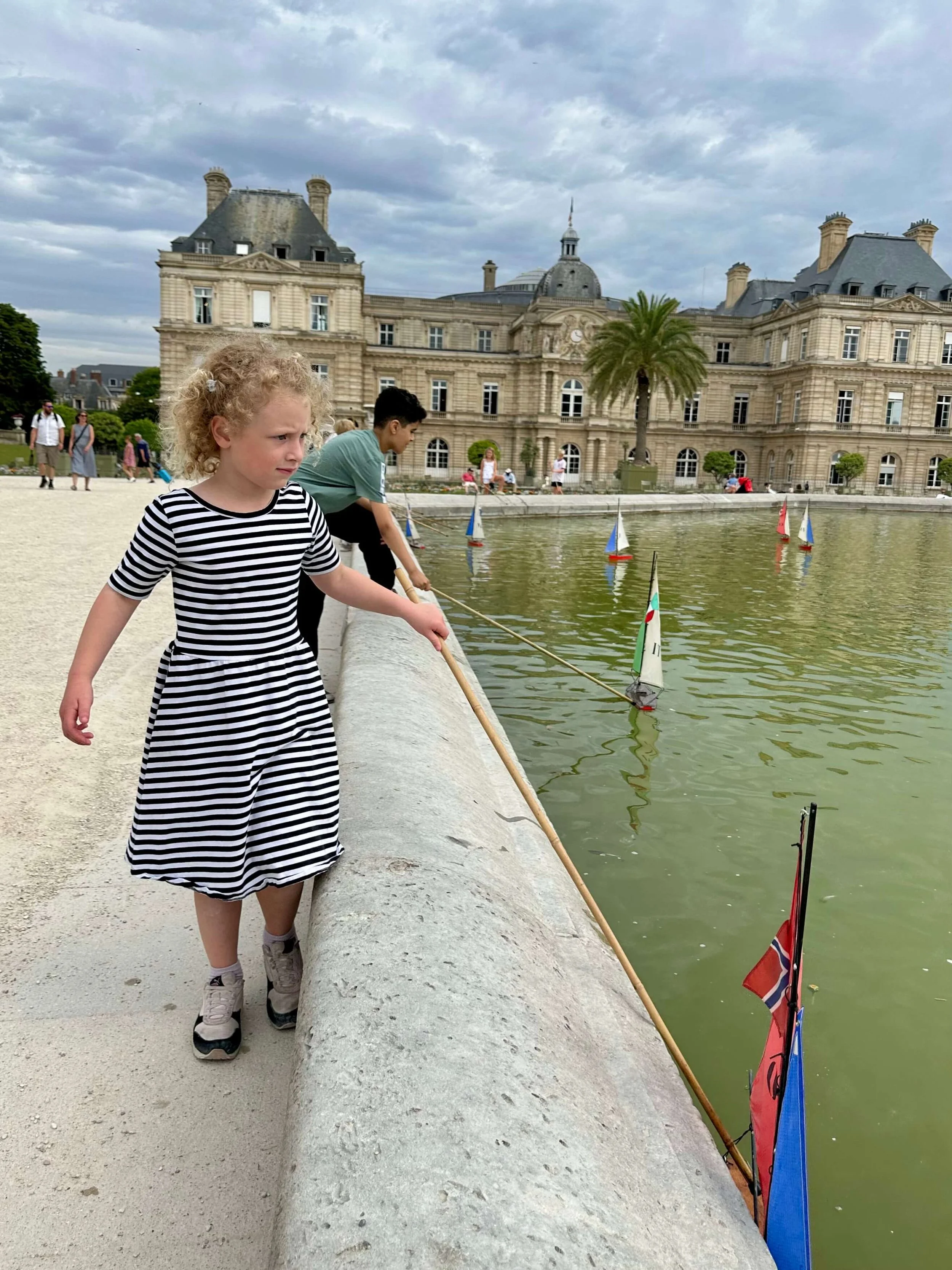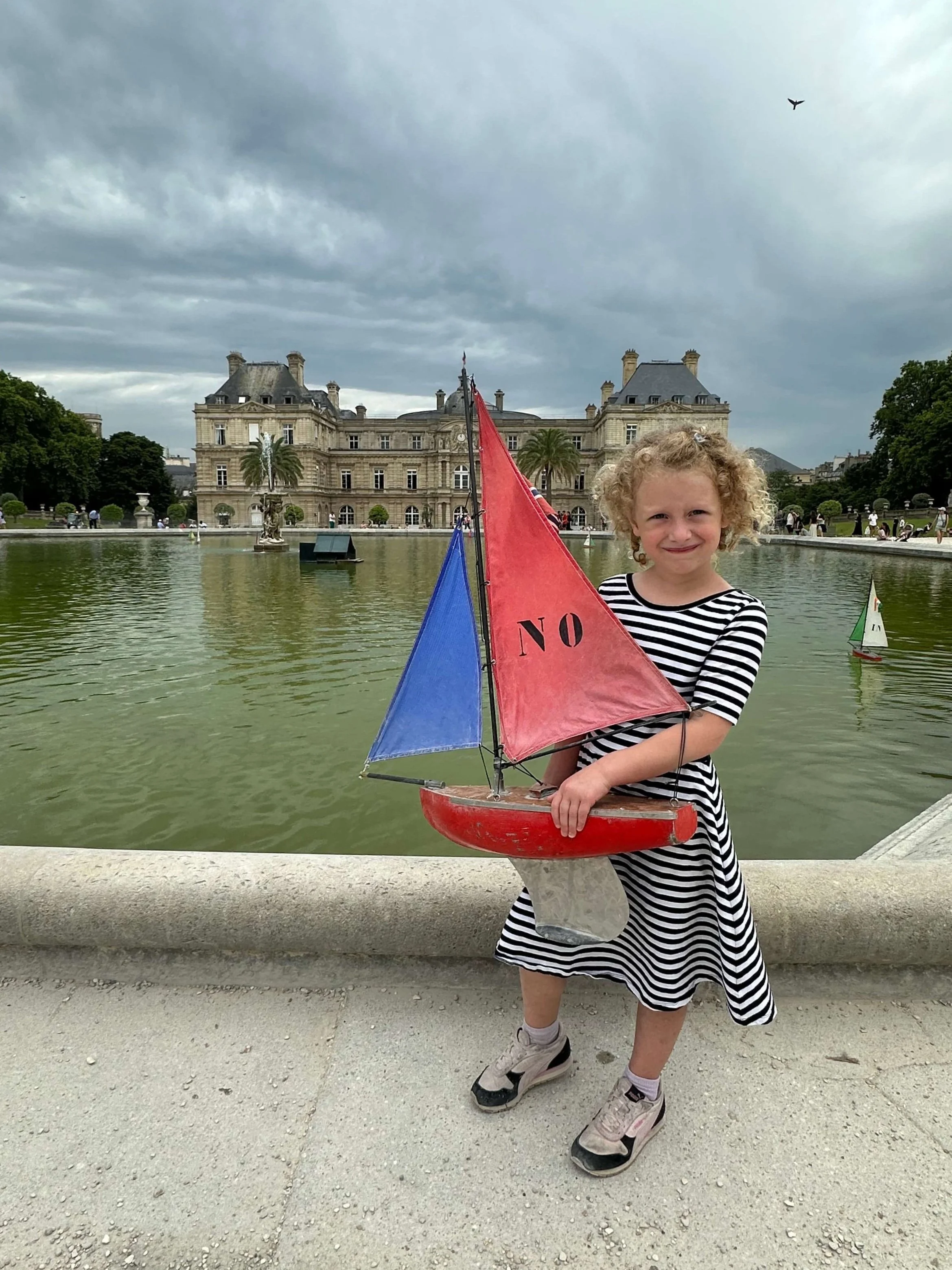 Ready to put our sailboat in the water in front of Palais de Luxembourg.