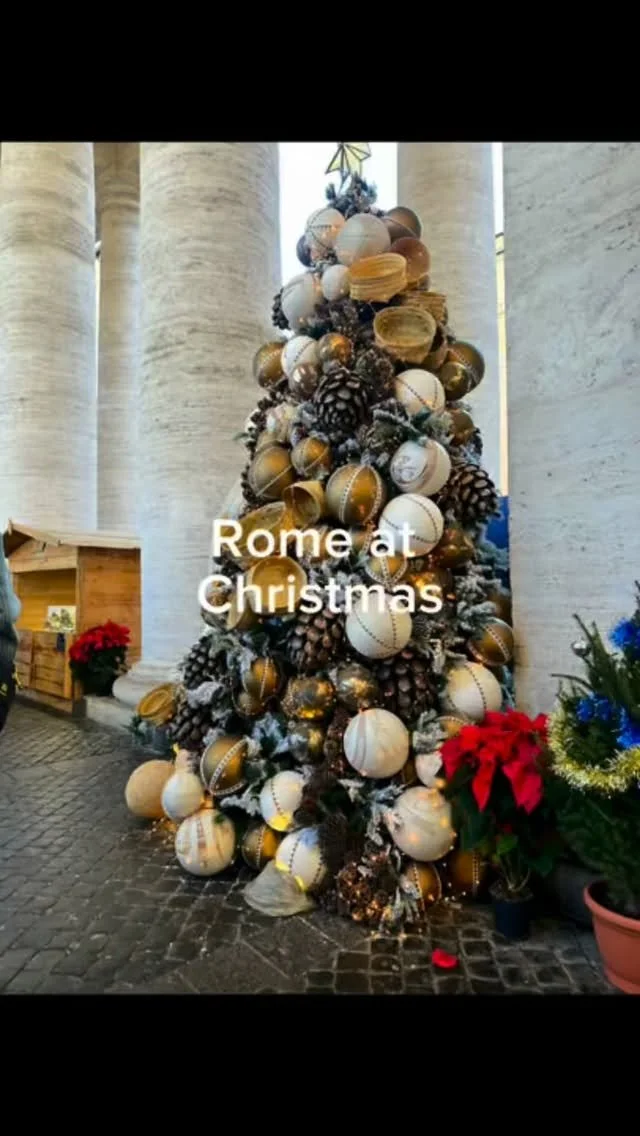 Our toddler’s daily walk past Christmas tree row at Château Frontenac